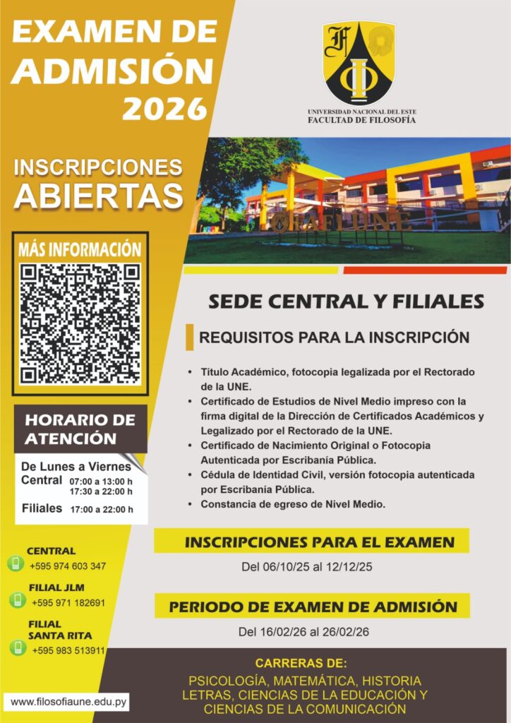 Examen de Admisión FAFI 2026Sede Central y Filiales Reglamentos de Admisión Leer mas Programas de Estudios Leer mas Formulario de Inscripción Leer mas FlyersFlyers informativos La preparación es la clave para brillar en tus exámenesFrase motivacional